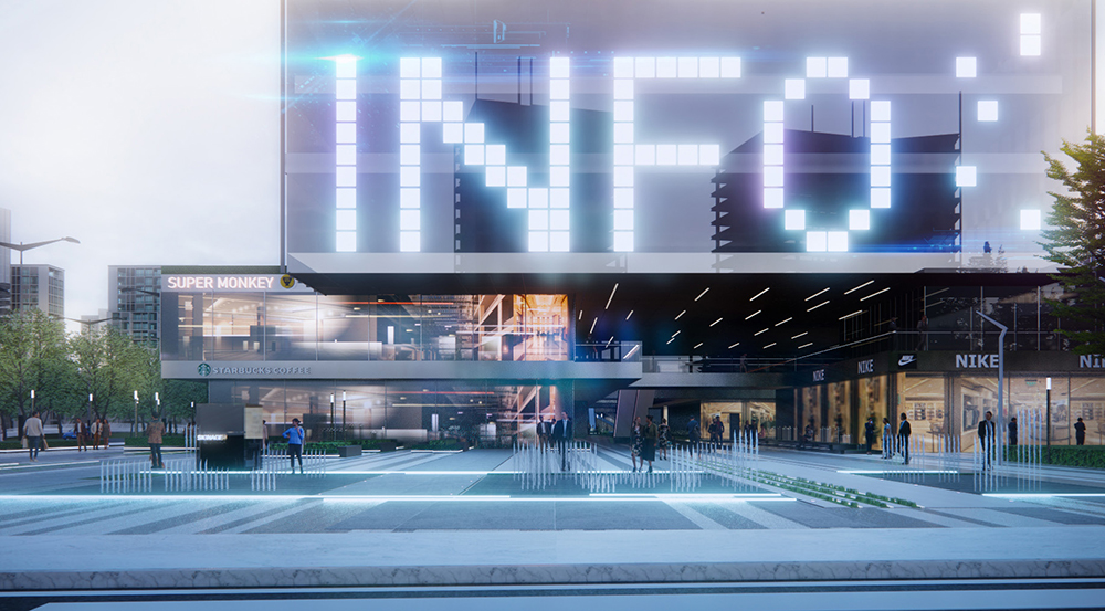 项目地点:中国上海宝山,承接方式:委托项目,实施情况:北地块已竣工,南地块在建,时间:2016年,业主:龙湖集团,工程面积:10万㎡。商业建筑外街面和内街面保持元素统一的元素,流畅的线性铺装,起到对人流的引导作用;商业外围绿化带打造了一个大型绿色有氧活动场地,将阳光、空气、水流、植物等景观元素, 引入到商业空间内,给消费者带来开放式购物体验。